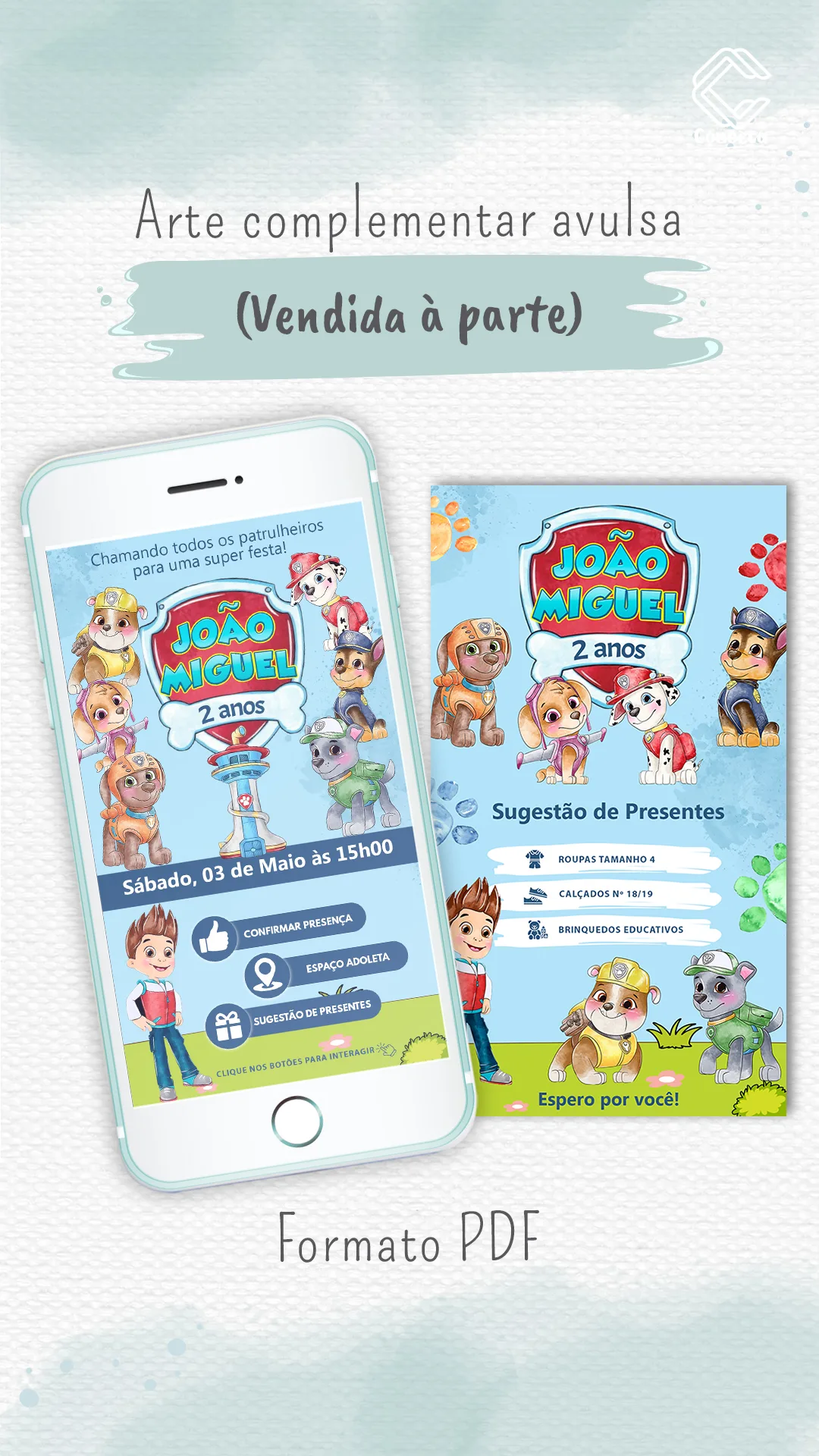 Seja o primeiro a avaliar “Convite Animado Patrulha Canina Aquarela”